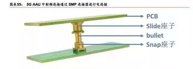 5G时代天线有源化,AAU内功分网络和基带处理板将以PCB形式存在,传统馈线连接方式已不能满足需求,此时板对板之间需要由射频连接器进行连接。
