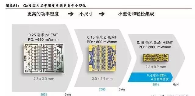 也就是说,相同发射功率规格下,GaN裸片尺寸为LDMOS裸片尺寸的1/6至1/4。