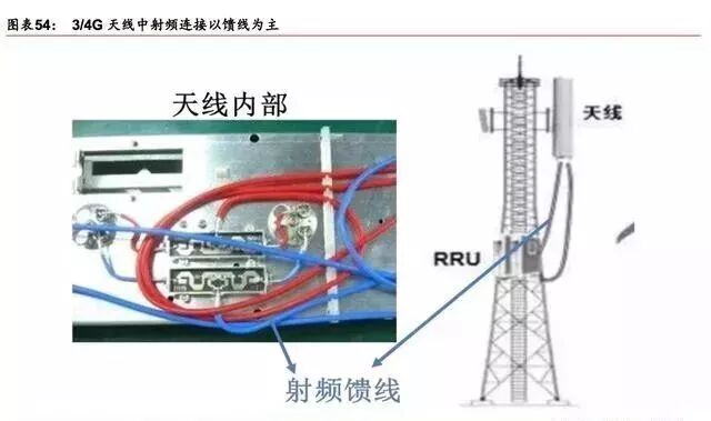 3/4G时期,天线与RRU之间、天线内部天线振子与射频器件相连都是通过馈线连接。