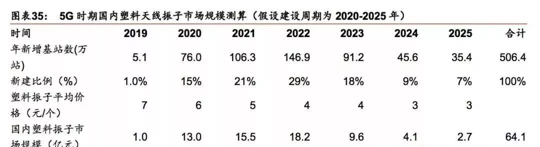 考虑当前塑料天线振子还未大规模量产,根据调研,初始期一对振子大约7元,进入成熟期价格可能下降到3元/对。